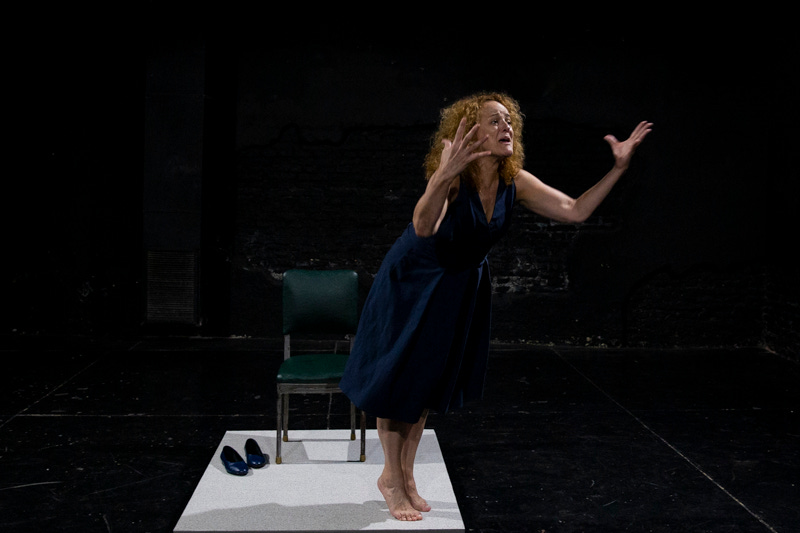 El escenario es un gran cuadrado vacío. Al fondo y a los costados las paredes de la sala parecen una escenografía en desuso. La extensión del espacio invita a imaginar movimientos, desplazamientos, pero no. La obra transcurre en un rectángulo, una tarima pequeña que eleva apenas el suelo, sobre la que hay una silla. Ahí se sienta la actriz y empieza a narrar.