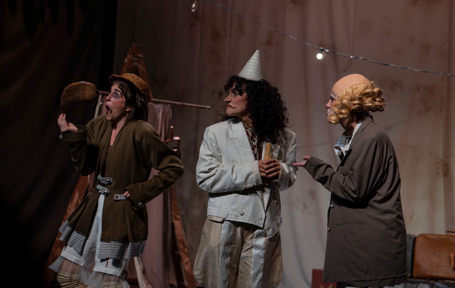 Los instantes circenses de este espectáculo terminaron de consolidarse en la otra obra que vi esta semana. Ahora sí, cien por ciento clown de principio a fin.